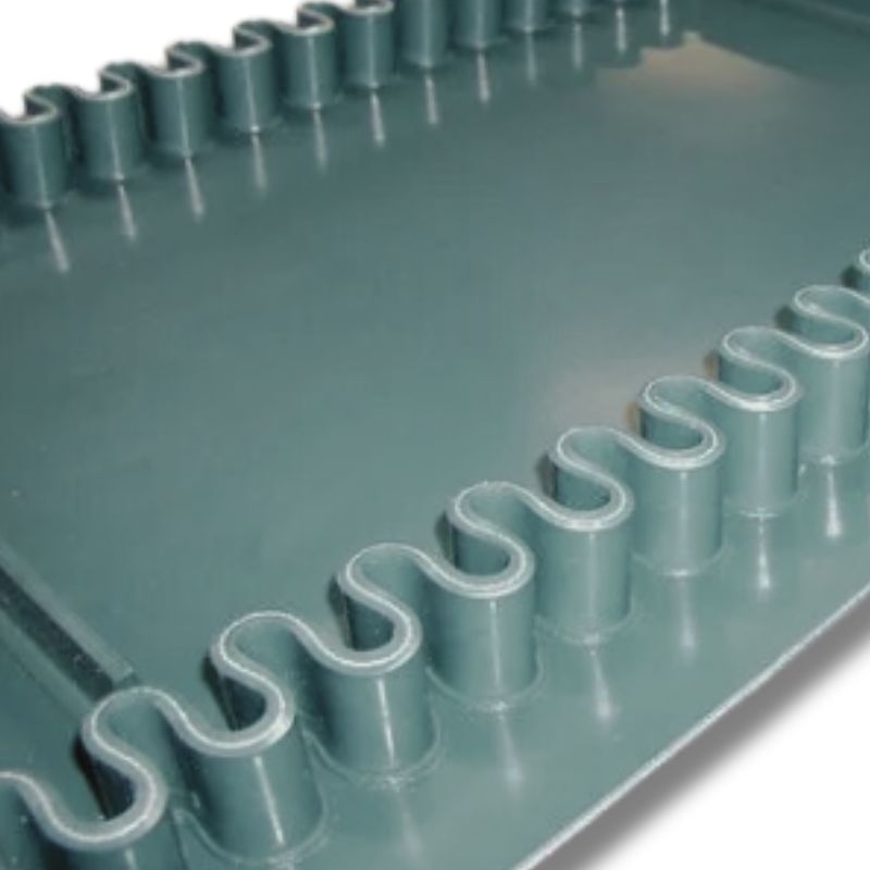 Cleated Belts: Designed with cleats to prevent material rollback and ensure steady movement on inclines or declines. Perfect for steep or inclined conveying applications